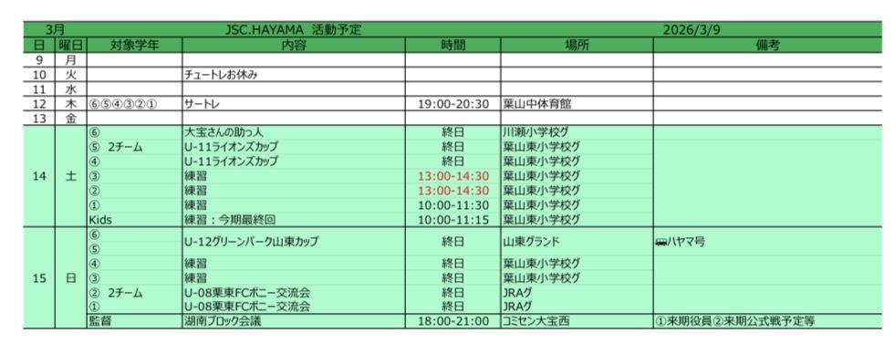さて、今週3/9の週のハヤマっ子たちの”ハー活”です。