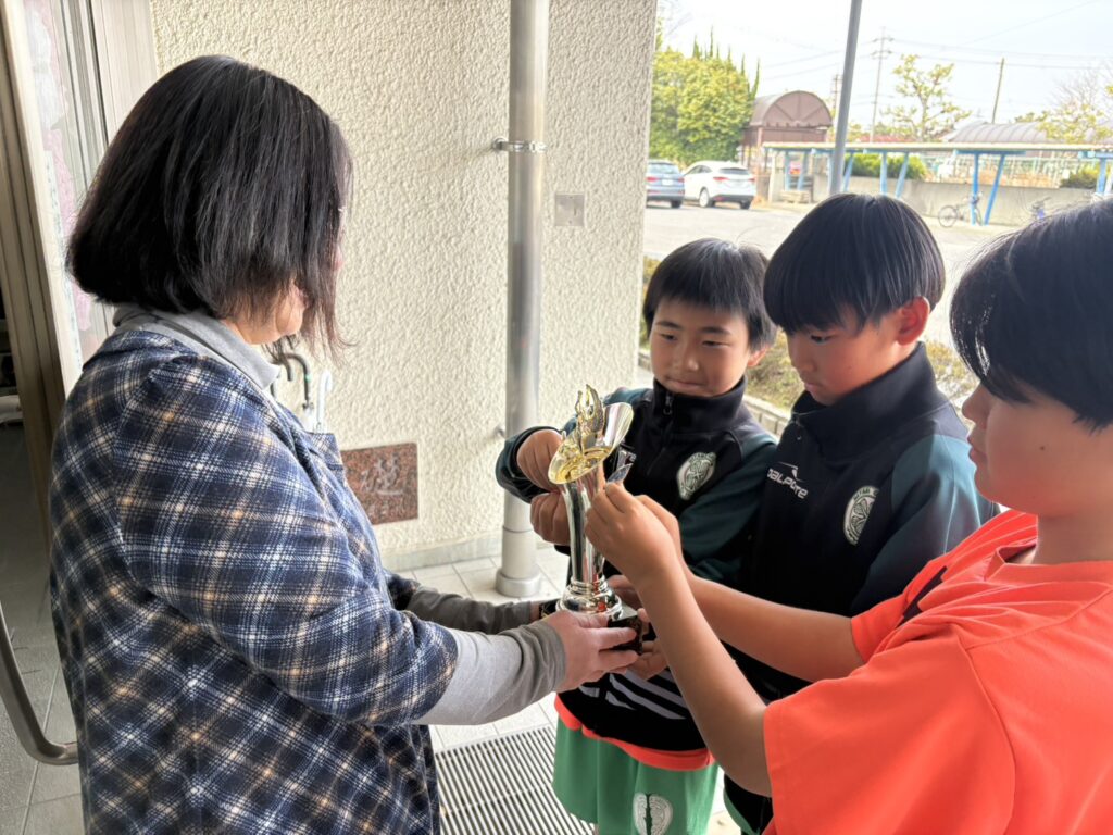 我がチームが拠点とする葉山東小学校様に栄誉あるトロフィーを預かっていただき