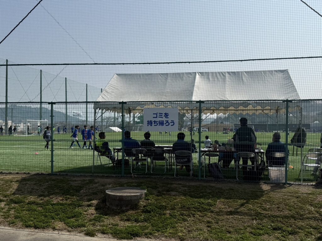 我々コーチスタッフは本部席から黙って見守りサッカー談義。