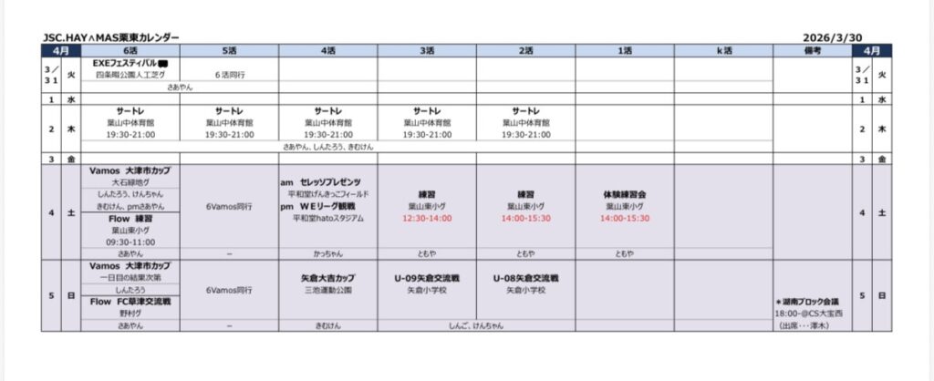 さて、今週の予定です。よろしくお願いします⚽